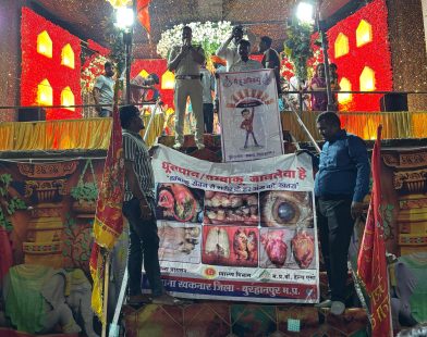 बुरहानपुर पुलिस ने गरबा पांडाल एवं स्कूल कॉलेज में “मै अभिमन्यु” अभियान के अन्तर्गत चलाया जागरूकता अभियान।*