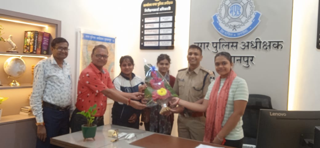 आज दिनांक 17/8/2025 को नगर पुलिस अधीक्षक श्री गौरव पाटिल एवं जिला खेल एवं युवा कल्याण अधिकारी द्वारा इन चयनित युवतियों का उत्साहवर्धन किया गया एवं पुष्पगुच्छ भेंट कर शुभकामनाएं प्रदान की गई।