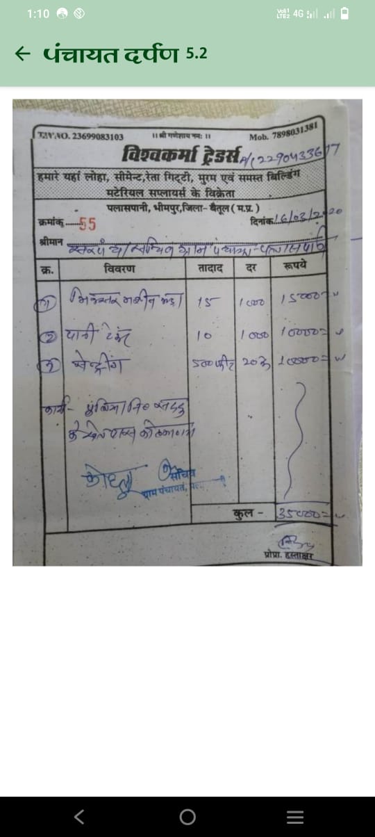ग्रामीणों का कहना है कि विधायक निधि से स्वीकृत वर्ष 2020 में पुलिया निर्माण सद्दू के खेत के पास प्रशासकीय स्वीकृति राशि 2 लाख 50 हजार जिसमें से सरपंच /सचिव द्वारा 174000 की राशि बिना कार्य किया ही निकाल लिया गया । सिर्फ वहां पर पुलिया के पाइप पड़ा हुआ नजर आ रहा है।